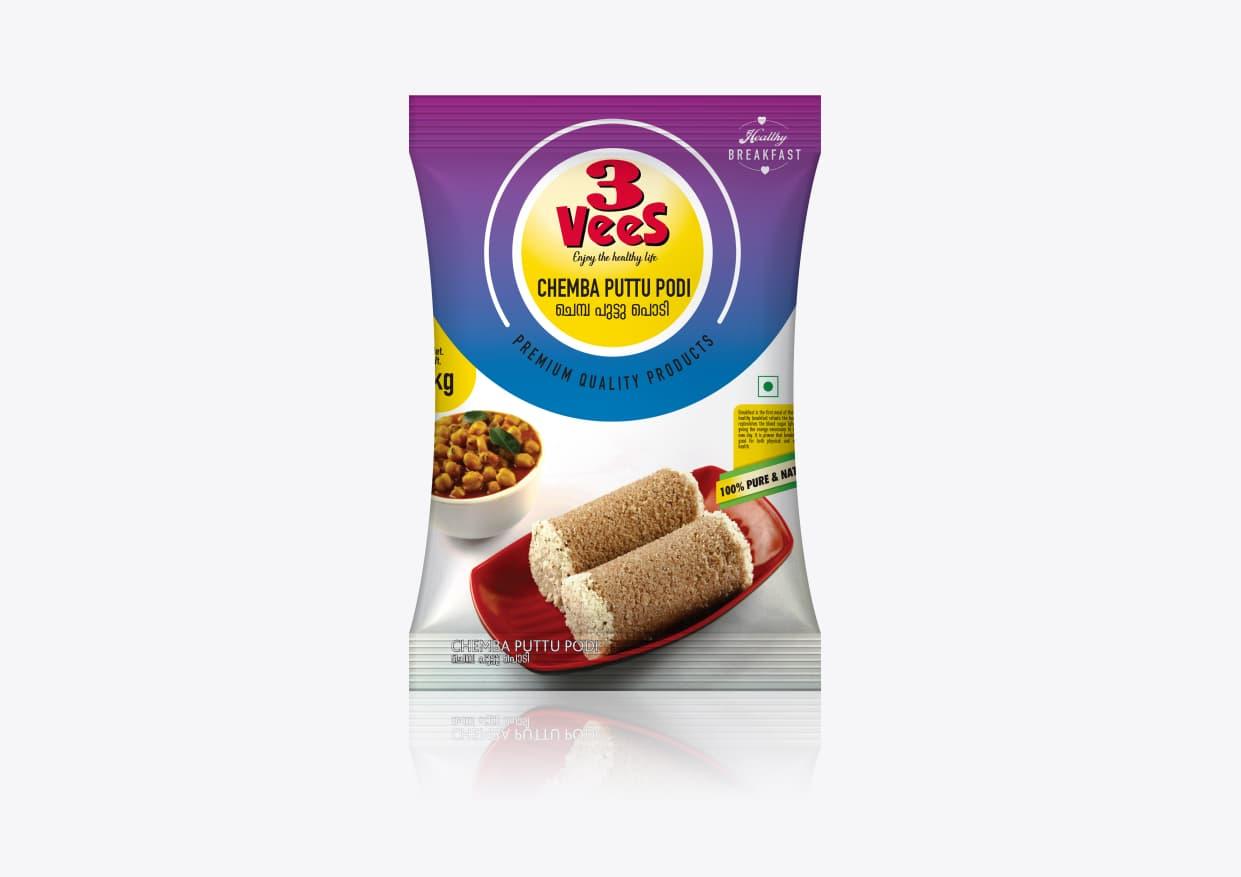 Chemba rice is known for its rich nutritional profile, offering higher fiber and iron content compared to white rice. Whether enjoyed with banana, kadala curry, or grated coconut, 3VeeS Chemba Puttu Podi brings the taste of Kerala to your home.